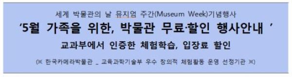 ¡á Çѱ¹Ä«¸Þ¶ó¹Ú¹°°ü ¹ÂÁö¾ö ÁÖ°£(Museum Week) ÀÔÀå·á, ±³À°Ã¼Çè 50%